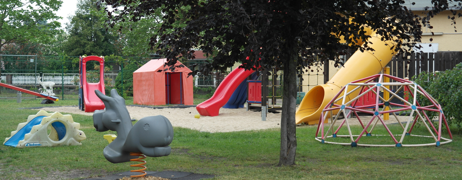 Wir bekommen das Mittagessen frisch gekocht von der Agrargenossenschaft aus Frauendorf. Besonders stolz sind wir auf unser umfangreiches Außengelände, das eine Größe von ca. 6000m² aufweist und die neu entstandene angrenzende Freizeit- und Sportanlage, die wir mit den Kindern nutzen.